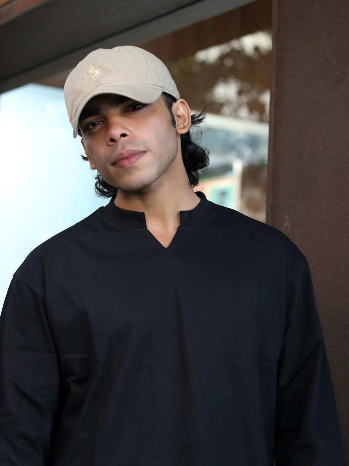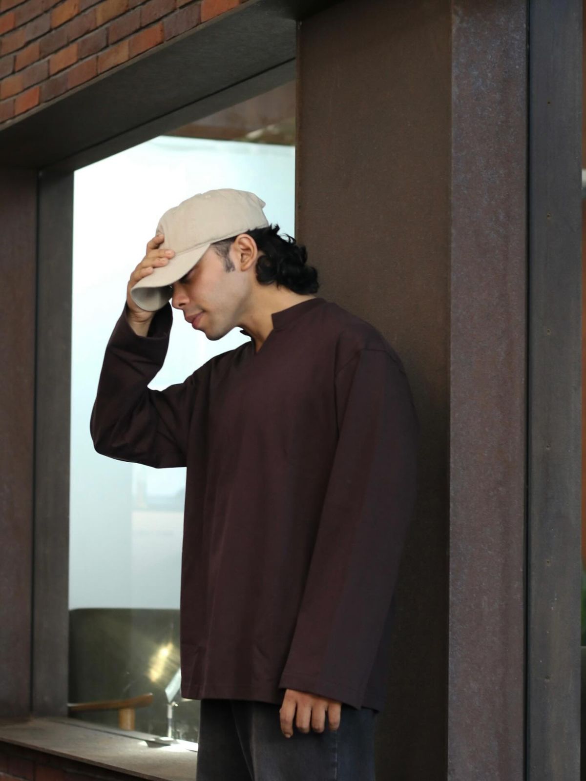 The Neckline: A structured, low-profile band collar that sits perfectly flat against the neck.